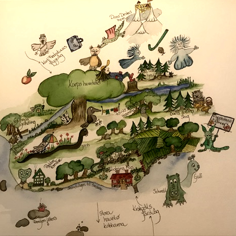 Här kan du se var alla bor i Flickans och Korpens värld, som du ser kan du se invånare som du ännu inte träffat också. De kommer i senare böcker.